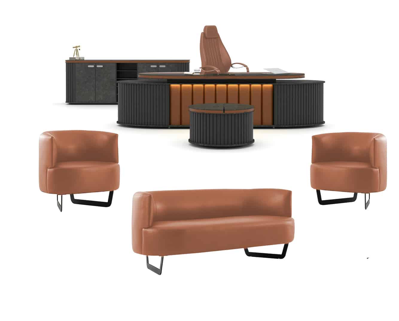 مكتب + ملحق جانبي +كردينزا + طاولة شاي + كرسي رئيسي + طقم كنب 3+1+1